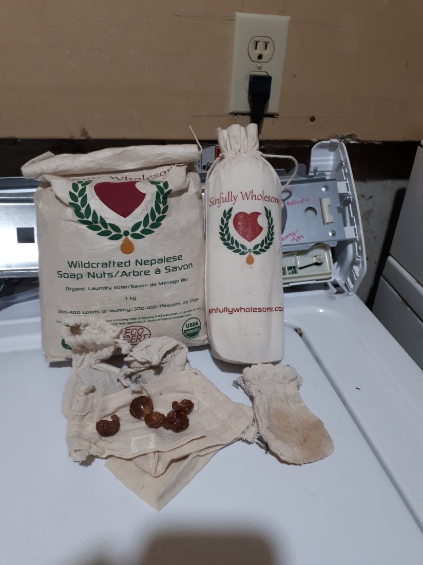 So the low down you put 5 soap nuts in a soap nut sack and you get 5 loads of laundry off one sack of 5 soap nuts then you compost them …